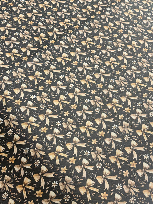 Black-Gold Bow YARD Leather , DIY Leather , faux leather , leather fabric , printed leather , leather sheets , custom print