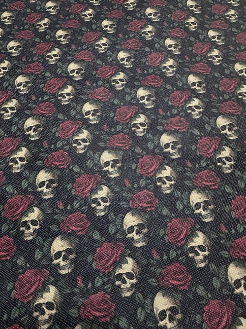 Black-Red Skull Rose YARD Leather , DIY Leather , faux leather , leather fabric , printed leather , leather sheets , custom print